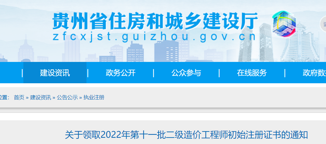 贵州省关于领取2022年第十一批二级造价工程师初始注册证书的通知