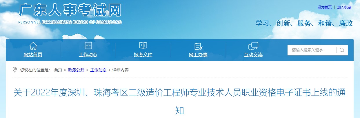 关于2022年度深圳、珠海考区二级造价师职业资格电子证书上线的通知