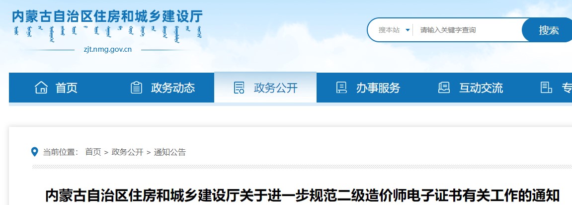内蒙古住建厅关于进一步规范二级造价师电子证书有关工作的通知