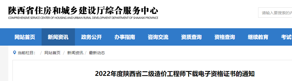 2022年度陕西省二级造价工程师下载电子资格证书的通知