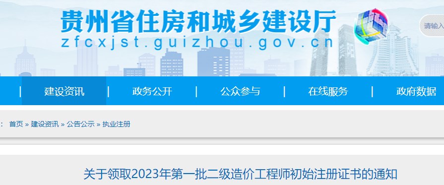 贵州省关于领取2023年第一批二级造价师初始注册证书的通知
