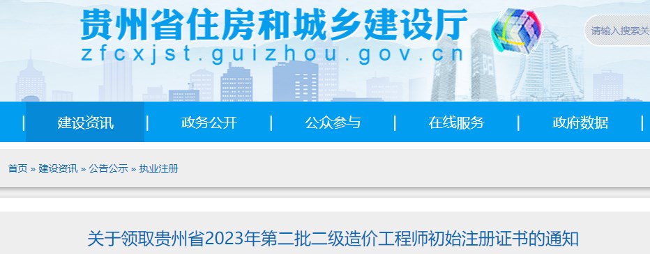 贵州省关于领取2023年第二批二级造价工程师初始注册证书的通知