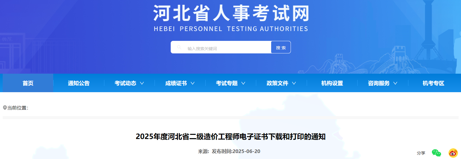 2025年度河北省二级造价工程师电子证书下载和打印的通知