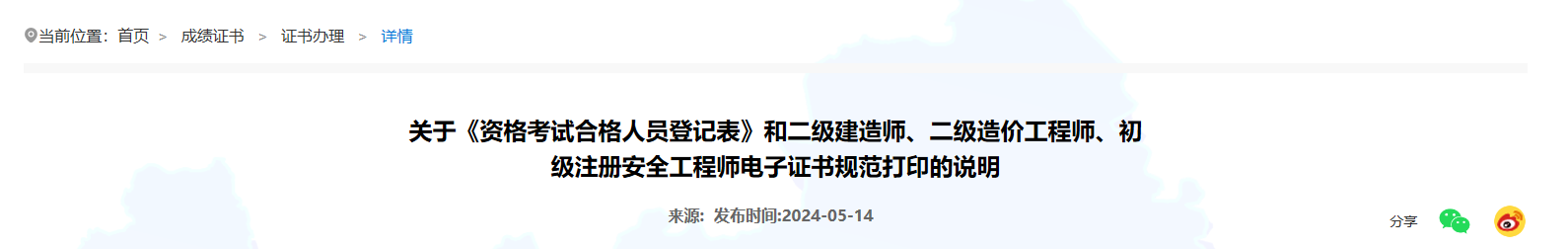 关于《资格考试合格人员登记表》和二建、二造、初级注安电子证书规范打印的说明