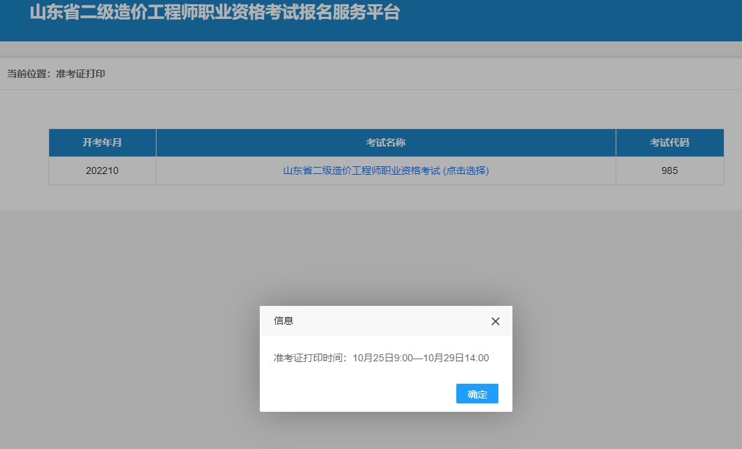 山东2021年度二级造价师准考证打印时间:10月25日-10月29日