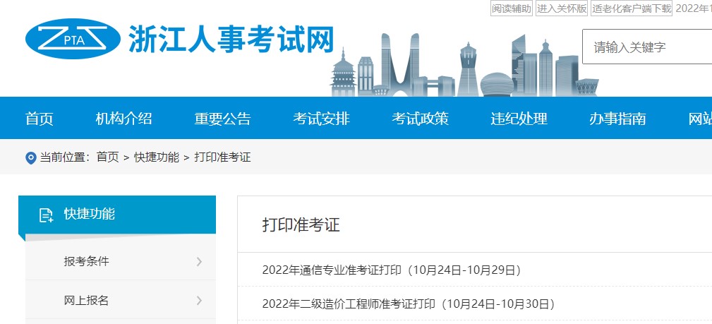 浙江省2022年二级造价师考试准考证打印入口已经开通
