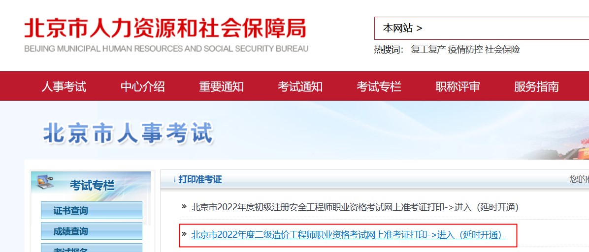 北京市2022年二级造价师考试准考证打印入口延时开通