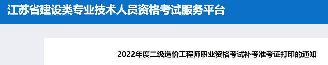2022年度南京、苏州、泰州二级造价师职业资格考试补考准考证打印通知