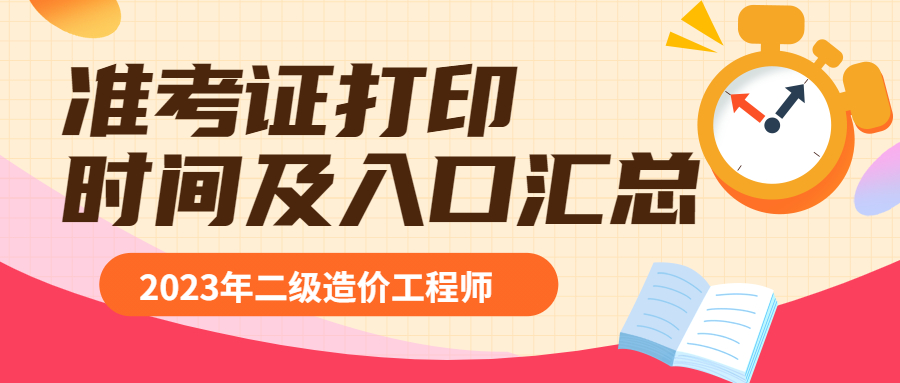全国2023年二级造价师考试准考证打印时间及入口汇总