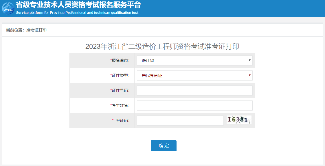 浙江省2023年二级造价师考试准考证打印入口已经开通