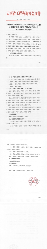 云南关于2024年咨询工程师考试成绩合格人员考后资格复核的通知