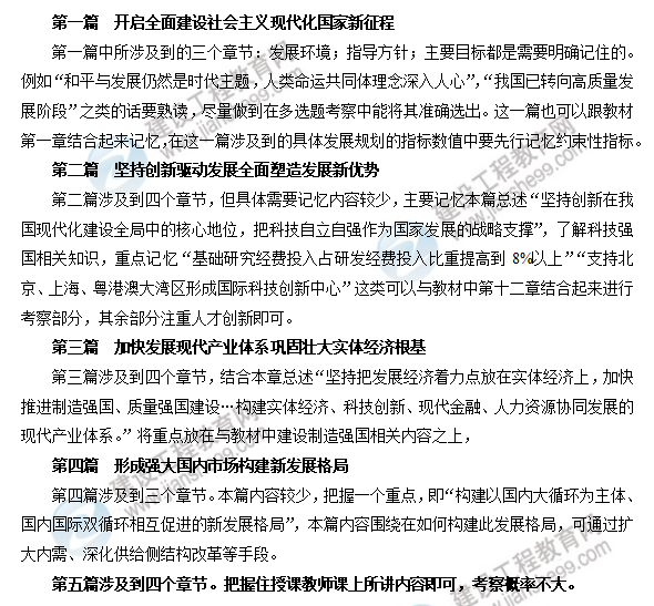 自第十二篇(实行高水平对外开放 开拓合作共赢新局面)之后,即自涉及开放的篇章之后,对咨询工程师就不涉及到特别重点的部分了,这与十三五和十二五规划一脉相承,开放的篇章前涉及到经济领域、环境领域等在咨询工程师平时工作涉及到的方面。开放的篇章之后跟咨询工程师的联系就大大减少,因此在学习十四五规划中,在没有时间的情况下着重看前十二篇。