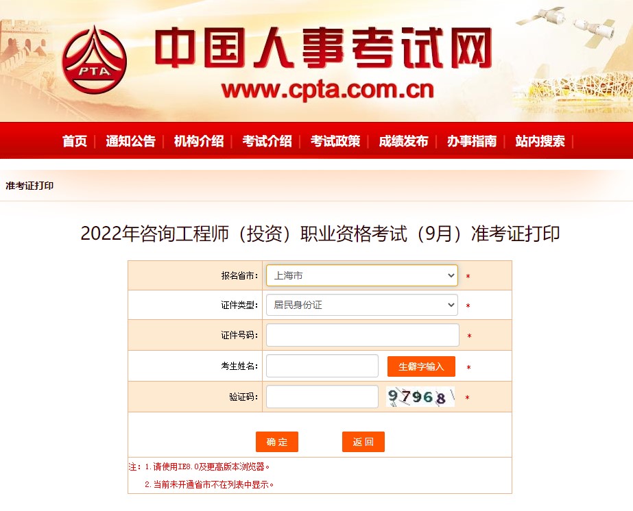 上海市2022年咨询工程师考试准考证打印入口已经开通
